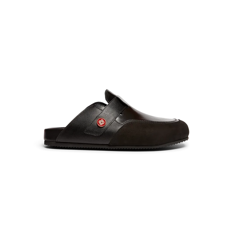 Lädermules för utomhusbruk är en platt, öppen sko utan bakstycke som är idealisk för övergångsvädret och förhindrar överhettning. Kompletterad med en justerbar rem och försedd med husets signaturlogotyp med sammanflätade C:n.