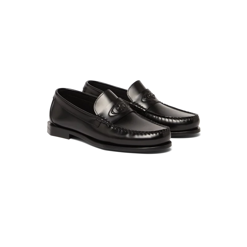 De svarta läderskorna för herr är en klassisk slip-on-modell utan snörning, tillverkad med ovandel i italienskt kalvskinn. Kompletteras med en distinkt läderrem över vristen, läderfoder, lädersula och en 15 mm blockklack.