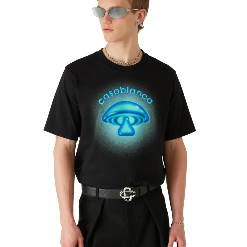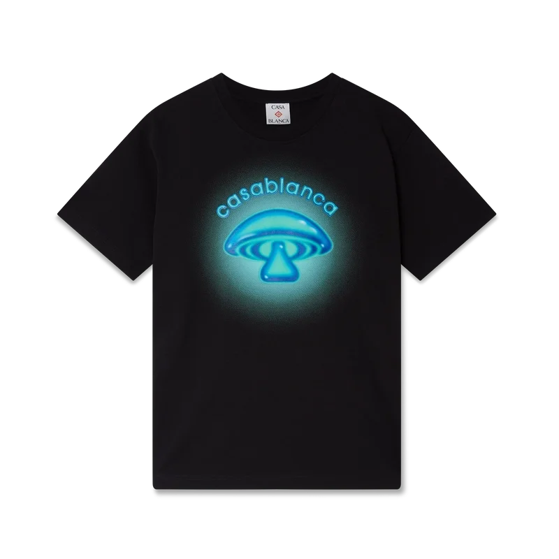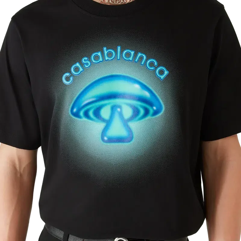 T-shirten med Airbrush Mushroom-logotyp är en elegant kortärmad T-shirt med tryck som bygger på våra tidigare experiment med airbrush-tekniken och ett av vårt husdesignelement – svampen. Avslutas med en klassisk rund hals.