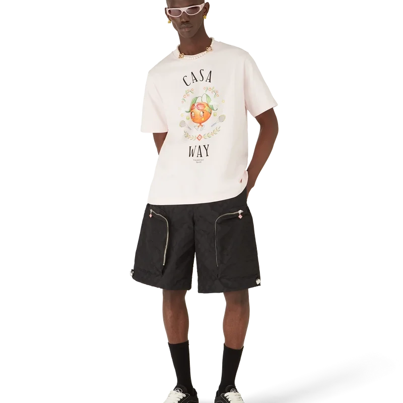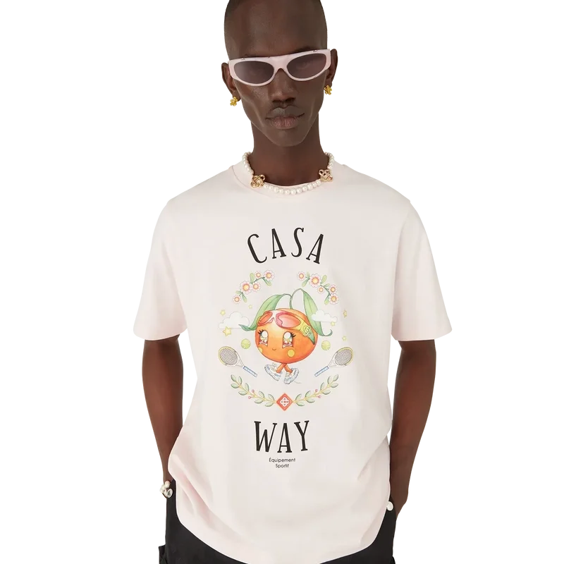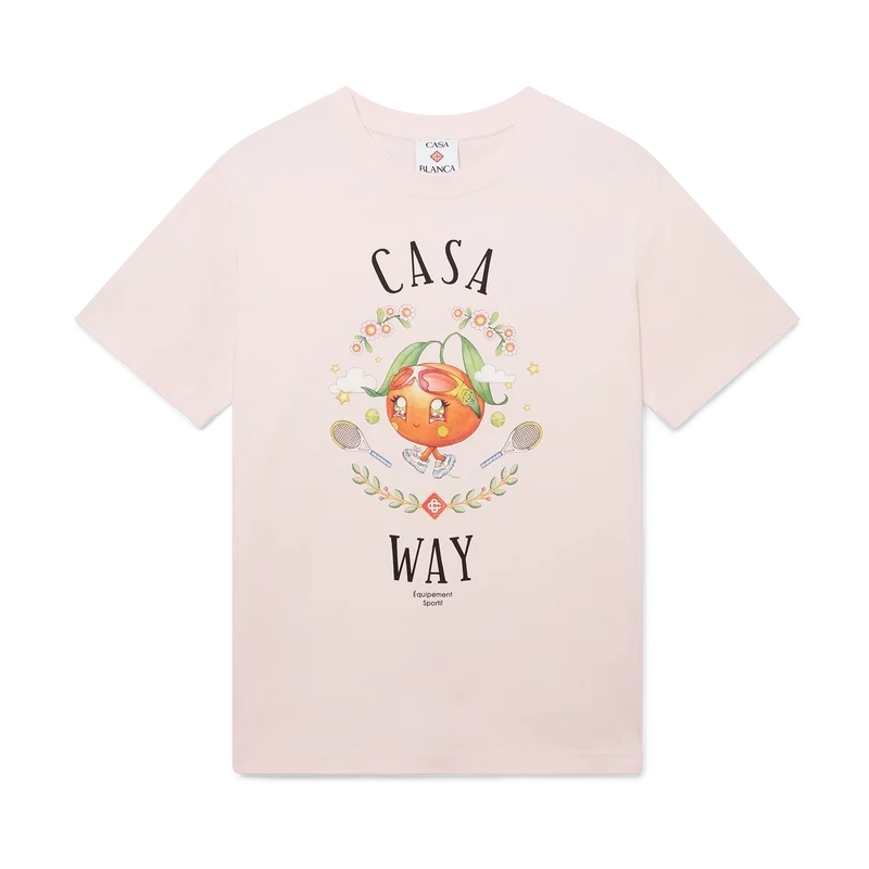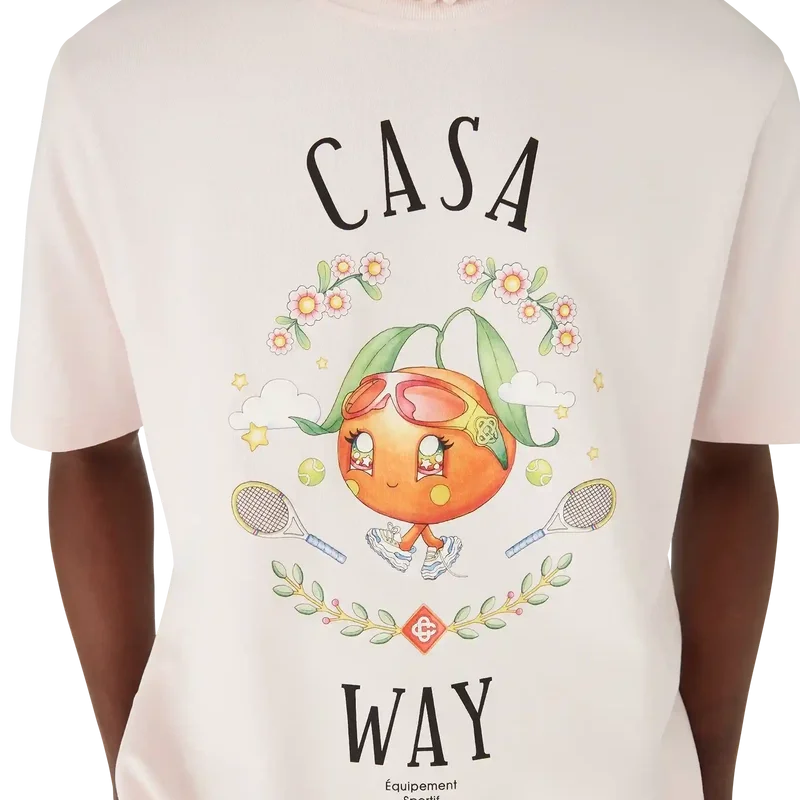 Casa Way Orange Mascot T-shirt är en kortärmad T-shirt med tryck som visar säsongens konstverk av Kawaii Orange – denna karaktär är en annan nyckelperson i vårt universum, med Casa-accessoarer, glasögon och sneakers. Avslutas med en klassisk rund hals.