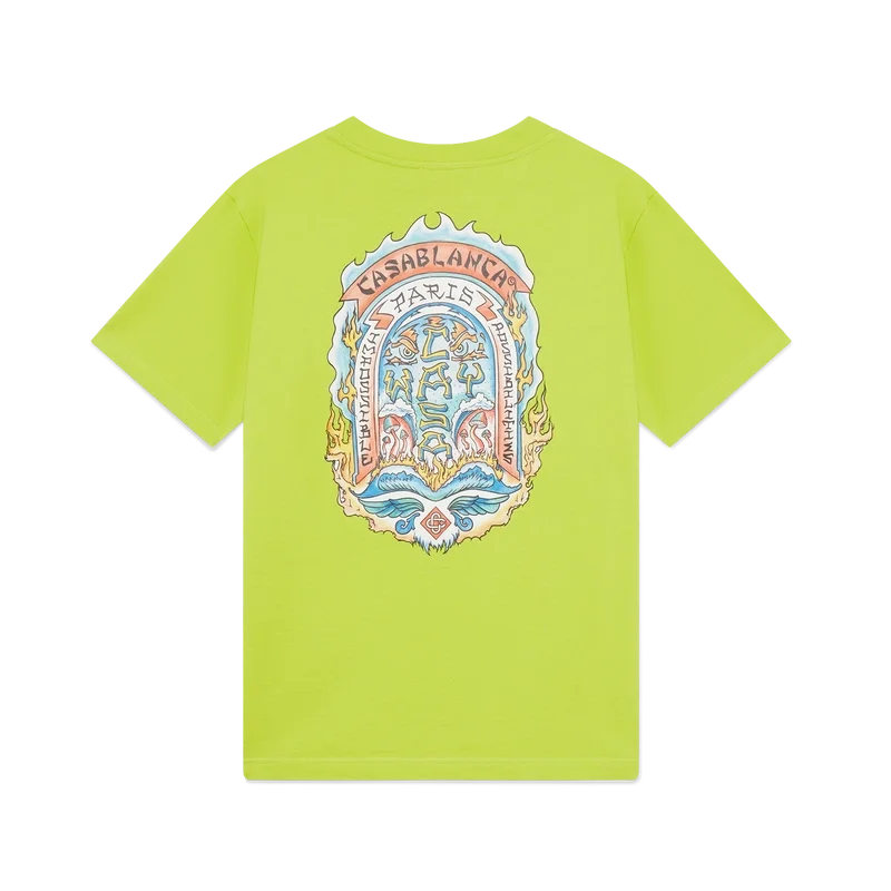 Casa Way Skate T-shirt är en kortärmad T-shirt med tryck, tillverkad av ekologiskt bomullstyg och med ett signaturmotiv inspirerat av klassiska 70-tals-skate-symboler från Kalifornien med en uttonad ram. Avslutas med en klassisk rund hals.