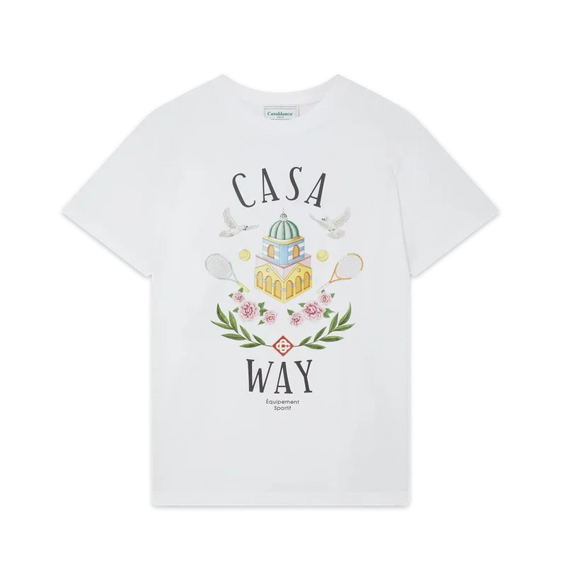 Casa Way-T-shirts i ekologisk bomull med screentryck har en säsongsbetonad tolkning av vårt signaturmotiv Casa Way.