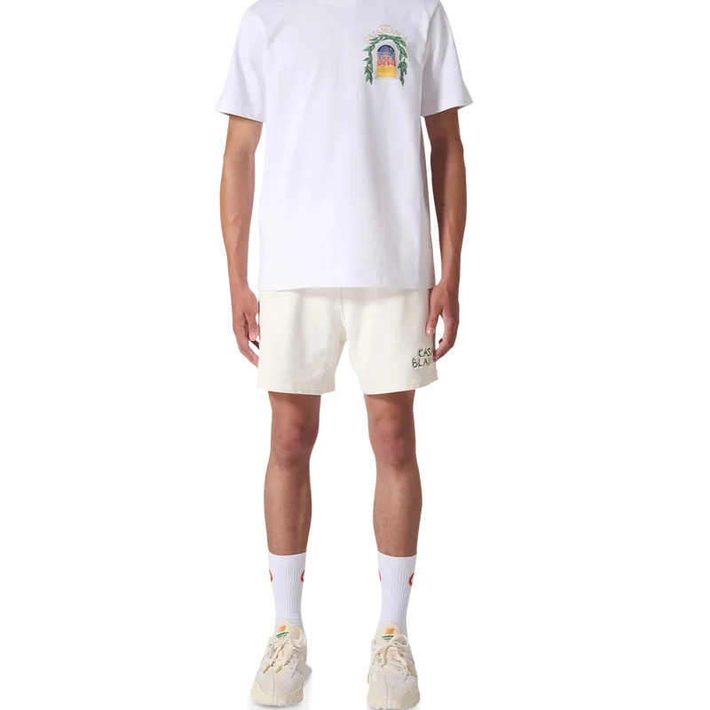 Casablanca Avenida T-shirt i vitt har ett säsongsbetonat screentryckt motiv där naturens fria flöde möter strukturen i den konstgjorda designen – bågen, en abstrakt symbol för styrka. Kompletterad med en klassisk rund hals, korta ärmar och Casablanca Paris-märkesetikett, designad för en avslappnad passform.