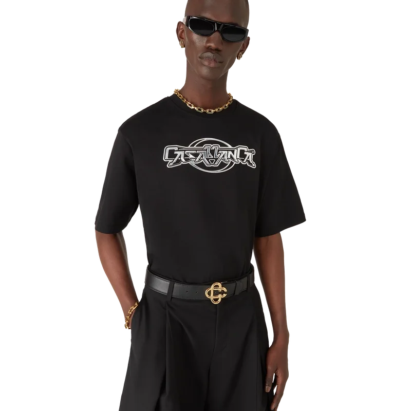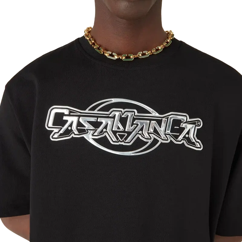Casablanca Chrome Oversized T-shirt är en kortärmad modell tillverkad av ekologisk bomull med Chrome Text Casablanca-logotypen. Avslutas med en klassisk rund hals.