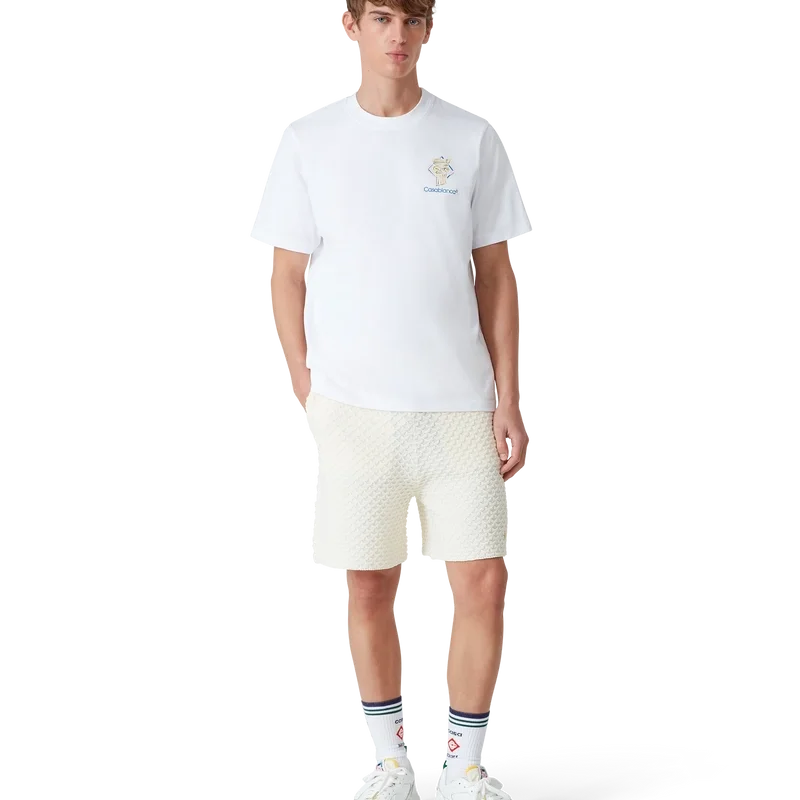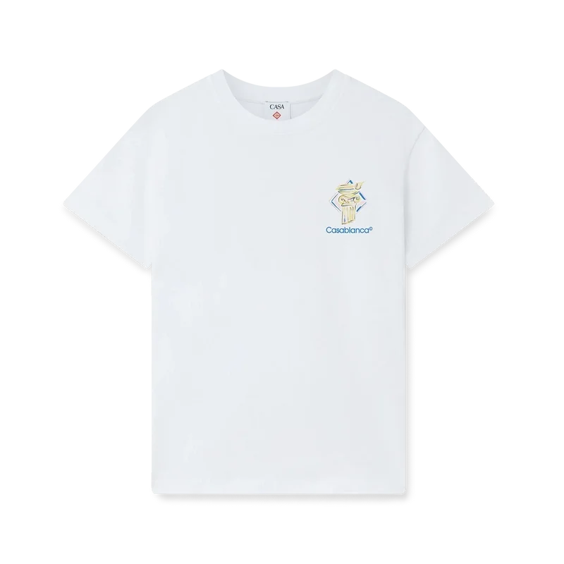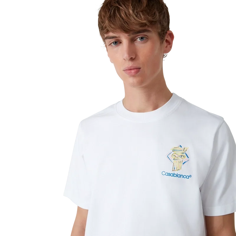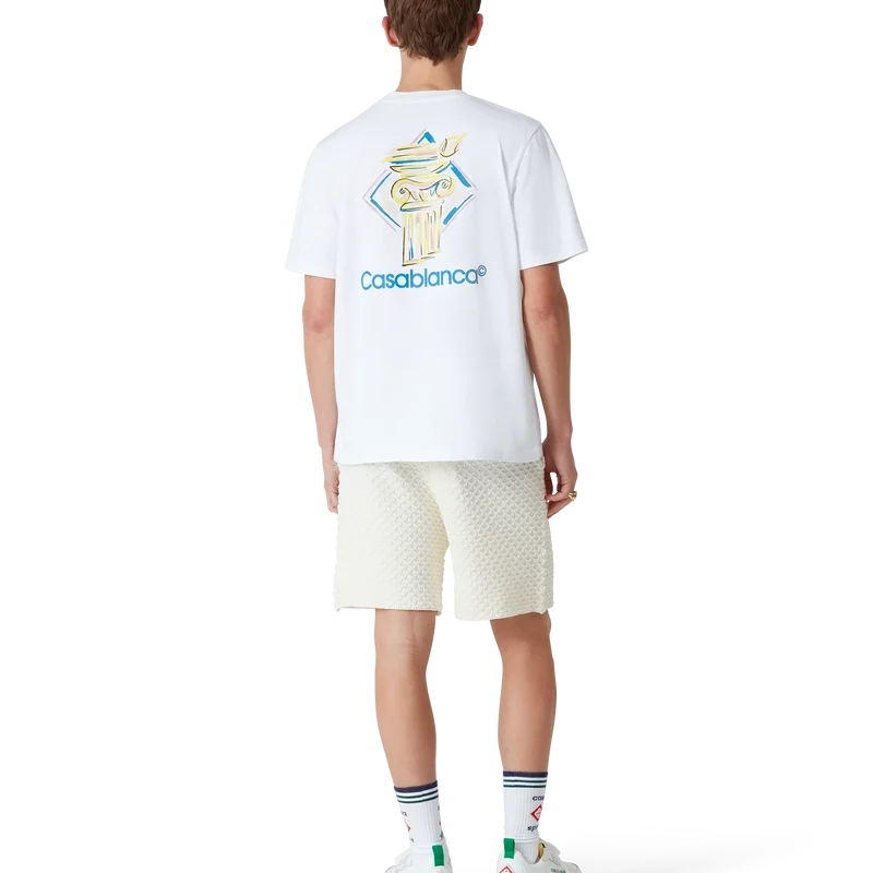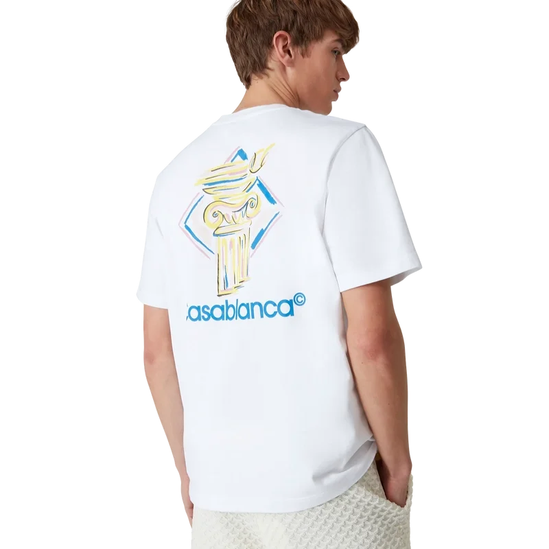 Diamond Column T-shirt är en kortärmad T-shirt med tryck, tillverkad av ekologiskt bomullstyg med husets ikoniska kolonnmotiv i kritstreck. Avslutad med en klassisk rund halsringning och Casablanca-logotyp.