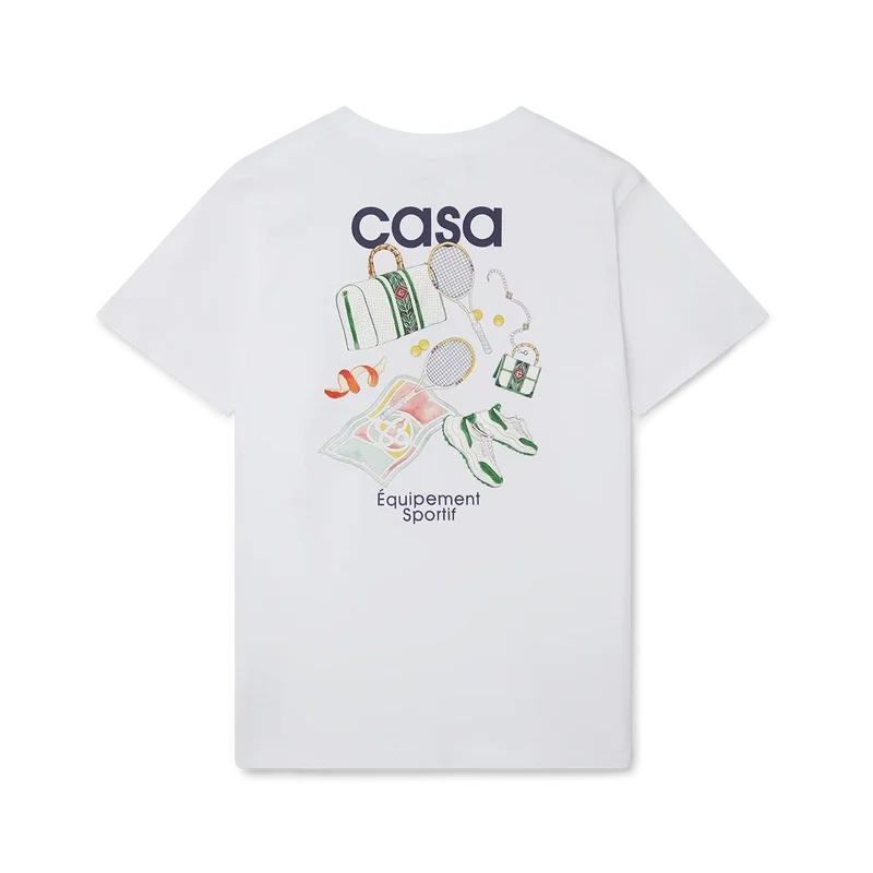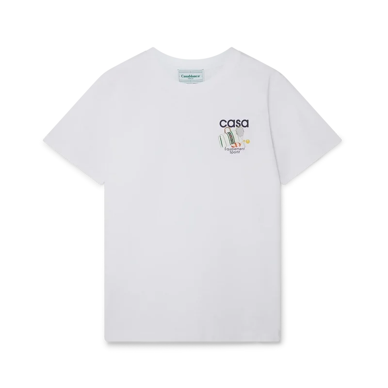 Equipement Sportif T-shirt har ett tryck av husets signaturkonstverk, omtolkat för denna säsong, på vänster bröst och upprepat i ett större tryck på ryggen. Tillverkad i 100 % ekologisk bomull och försedd med en klassisk rund halsringning och Casablanca-märkesetikett.