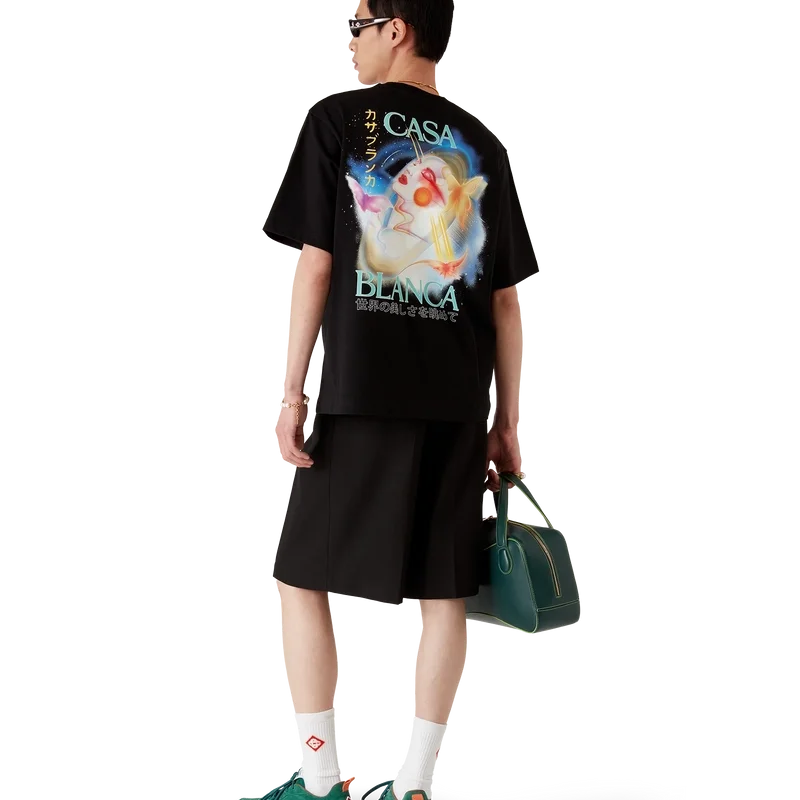 Galactic Connection T-shirt är en kortärmad T-shirt med tryck, tillverkad av ekologisk bomull, med vårt säsongsbetonade airbrush-motiv – inspirerat av Pater Sato. Med Galactic Connection utforskar vi vilka de bioniska varelserna i Casablanca skulle vara, samtidigt som vi behåller bergselementen i bakgrunden. Avslutas med en klassisk rund hals.