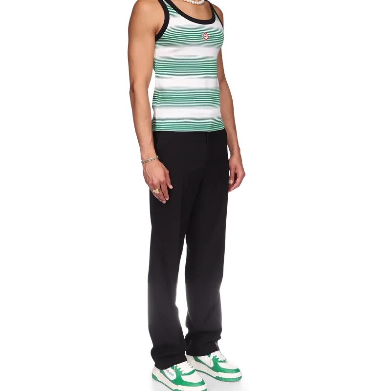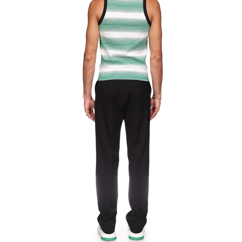 Gradient Stripe Ringer Tank Top är en klassisk design tillverkad av ett garnfärgat ekologiskt bomullstyg och inspirerad av färgerna i den nigerianska flaggan. Avslutad med rund halsringning, kontrasterande ribbad krage och ärmhål.