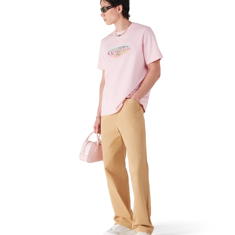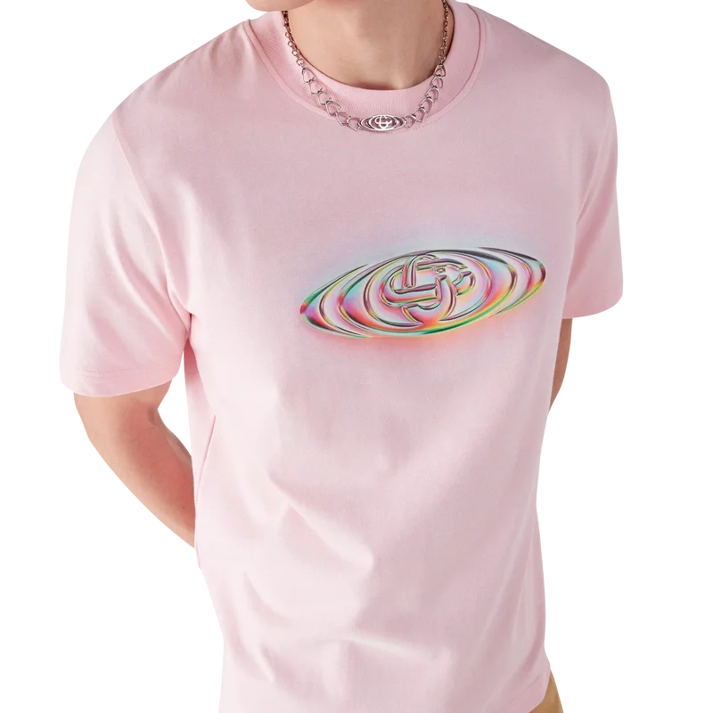 T-shirt med glaslogotyp och korta ärmar har en raffinerad design, utvecklad i samarbete med Martin Naumann, med distinkta konstverk som utforskar gradientövergångar och texturerade visuella effekter. Designen experimenterar med husets logotyp för att uppnå en harmonisk balans mellan halvtoner och glasinspirerad estetik. Kompletterad med rund hals och korta ärmar i en avslappnad silhuett.