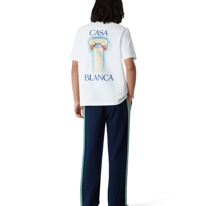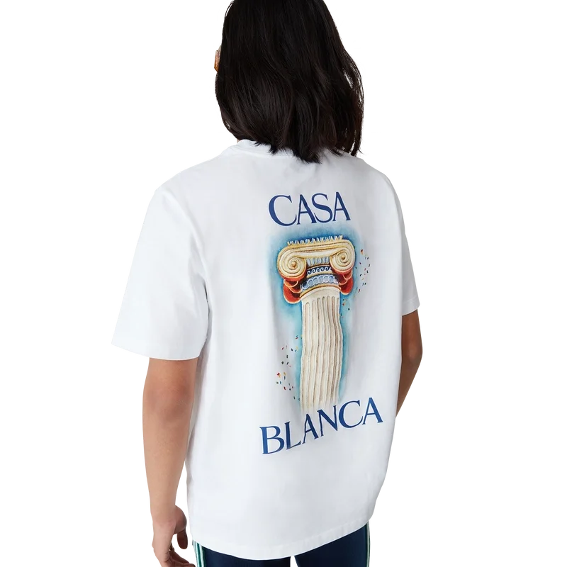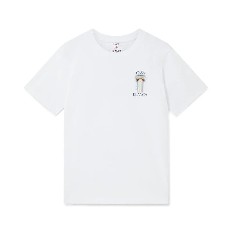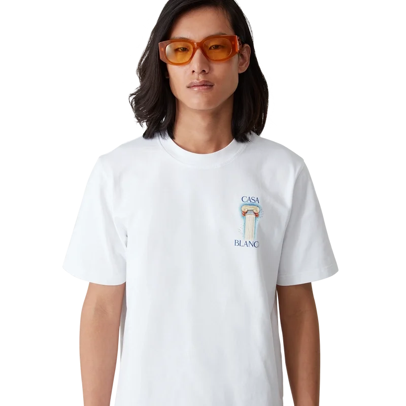 La Colonne T-shirt är en kortärmad T-shirt med tryck, tillverkad av ekologiskt bomullstyg med husets säsongsbetonade konstverk inspirerat av den fortsatta studien av den klassiska skönheten och den samtida charmen i det antika Grekland. Avslutad med en klassisk rund halsringning.