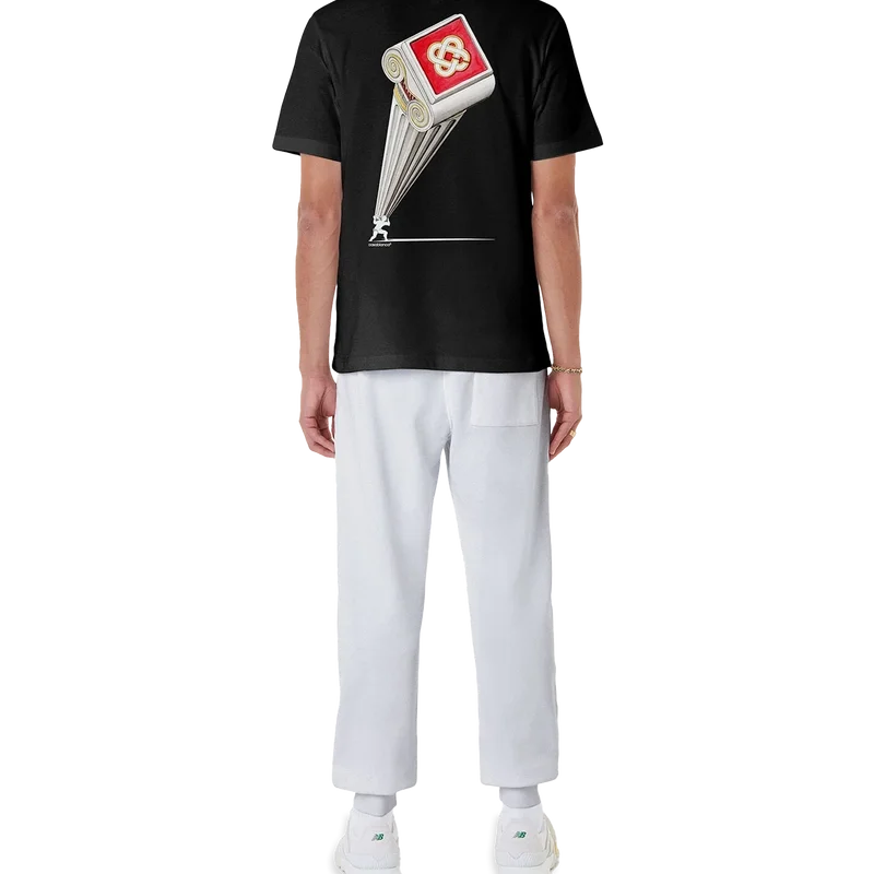 Leaning Column T-shirt är en tryckt kortärmad modell tillverkad av ekologiskt bomullstyg med husets säsongsbetonade konstverk inspirerat av en vintagefilmaffisch och antikens Grekland. Avslutad med en klassisk rund hals.<!–