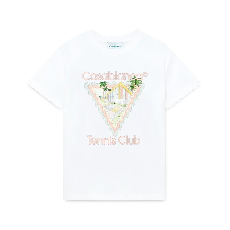Maison De Reve T-shirt är en kortärmad T-shirt med tryckt design som visar säsongens konstverk med referenser från ett hem i Palm Springs från mitten av 1900-talet och signaturdesignelement – palmer och en tennisbana med Memphis Wave-inspirerade detaljer som fungerar som ett grundläggande designelement – i säsongens pastellfärger. Tillverkad av ekologisk bomull, komplett med en klassisk rund hals.