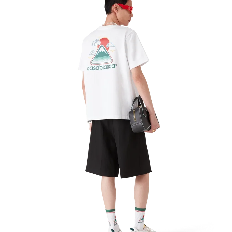 T-shirten Montagne Ondulee är en kortärmad modell med tryck, prydd med säsongsbetonade motiv som hämtar inspiration från Japans rika ikonografi. Den har en enkel design och grafisk utformning som förmedlar ett starkt visuellt budskap med endast några få linjer och färger, vilket gör den till ett av kollektionens signum. Tillverkad av ekologisk bomull. Avslutas med en klassisk rund halsringning.