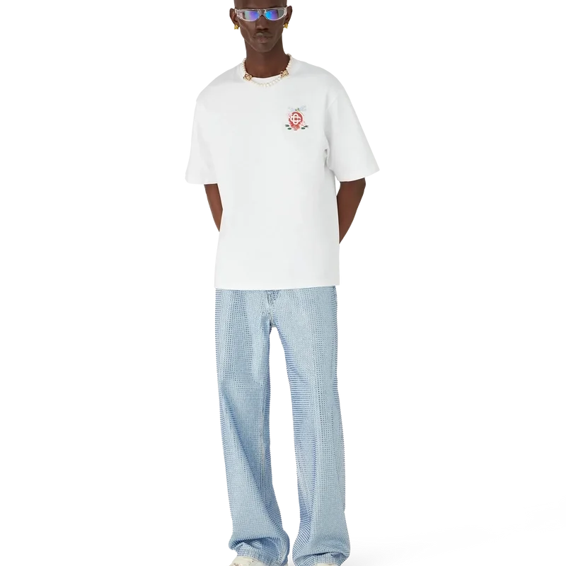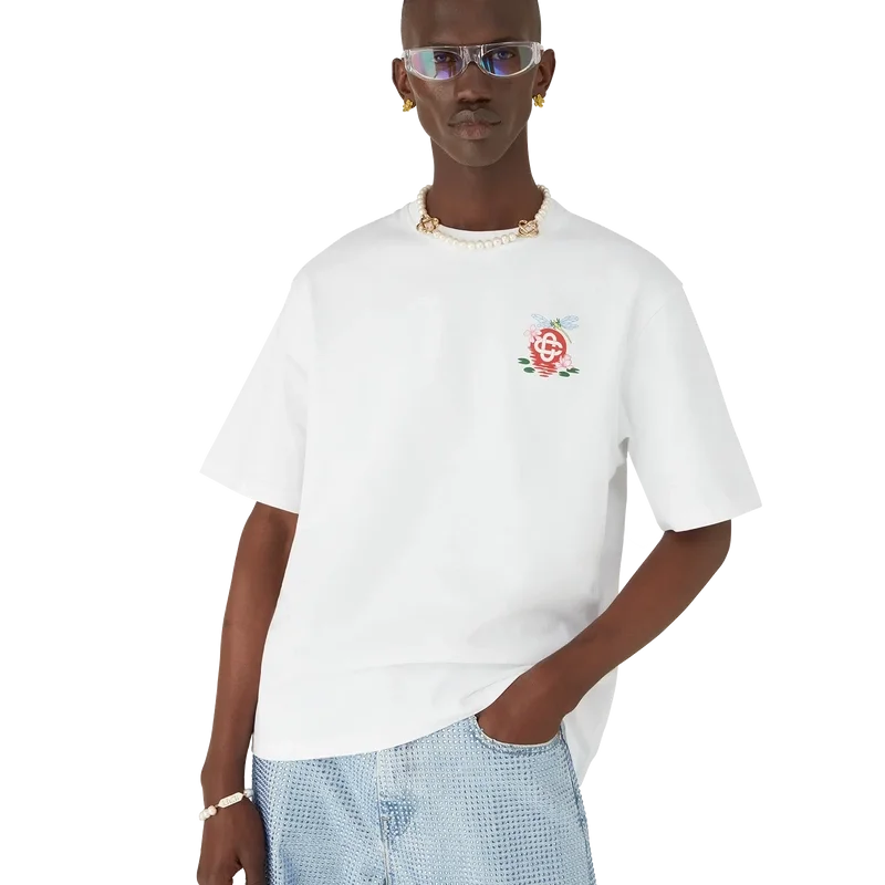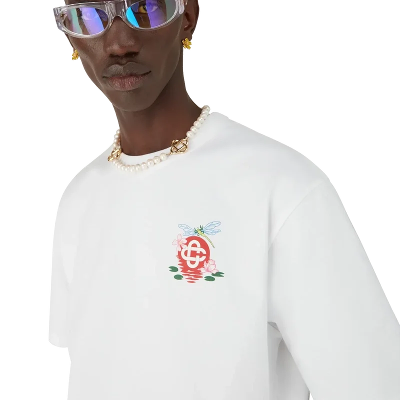 Den överdimensionerade T-shirten Dragonfly Floral har ett tryckt mönster med säsongens motiv inspirerade av Japan. Sländan står i centrum som en viktig symbol och skapar en mjukare, sötare kontrast till intensiteten hos de typiska BōSōZoku-skjortorna, medan lotusblommorna och solens spegelbild i vattnet anspelar på Casablancas natursymbolik. Kompletterad med korta ärmar och en klassisk rund hals.