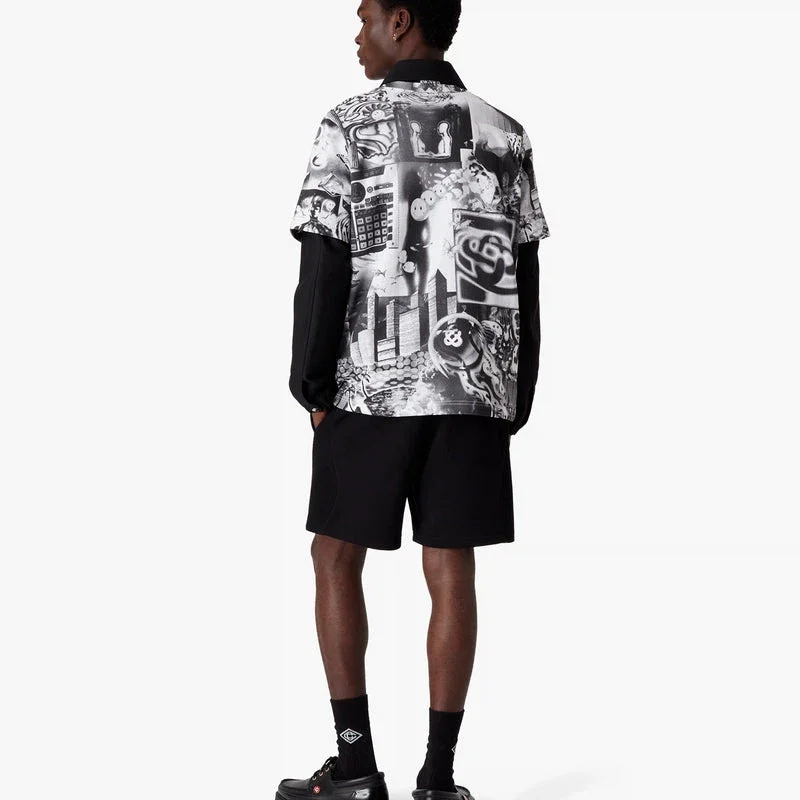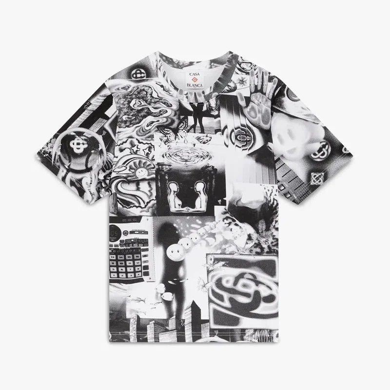 Rave Collage kortärmad mesh-T-shirt har en raffinerad design med säsongsbetonat konstverk som tolkar en rörig samling av rave-flyers och ikonografi omvandlad till en kornig textur. Avslutas med en klassisk rund halsringning.
