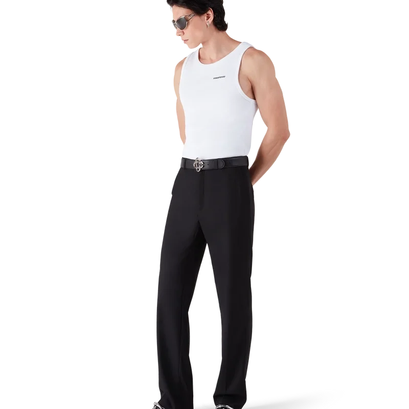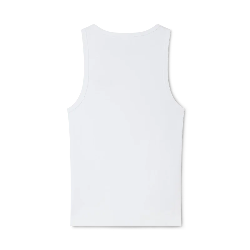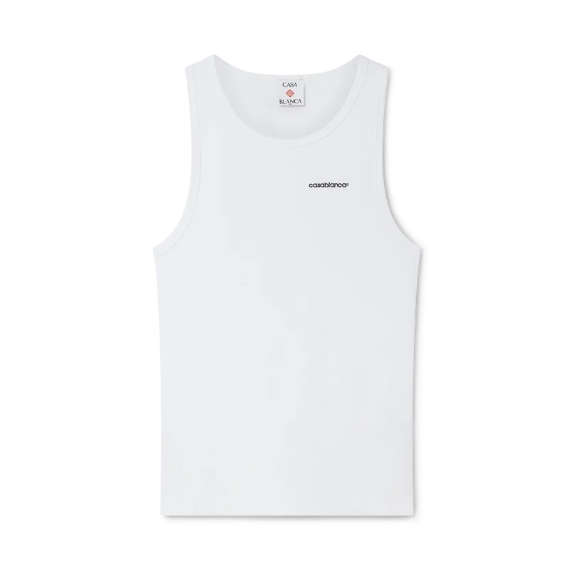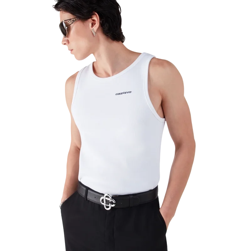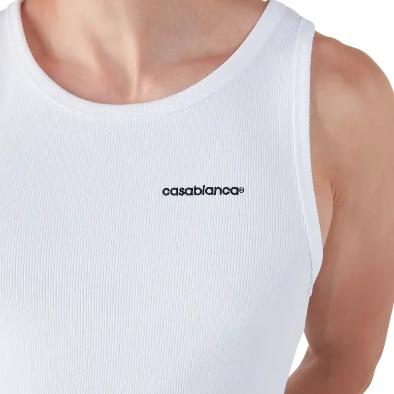 Den ribbade linne är en elegant, ärmlös och figursydd modell. Den har Casablanca-logotypen, rund halsringning och ribbade detaljer runt halsen och ärmhålen.