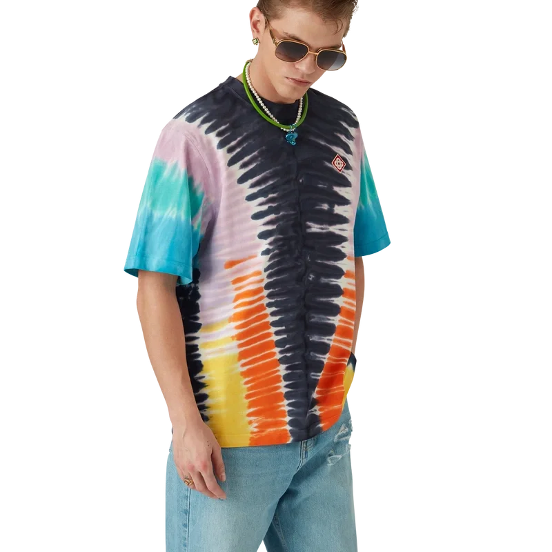 T-shirten med gradient-tie-dye är en kortärmad modell med tryck, tillverkad av ekologisk bomull och prydd med ett karakteristiskt tie-dye-mönster som påminner om en souvenir-T-shirt man köper på en strandsemester. Den kompletteras med en klassisk rund halsringning och det karakteristiska diamantlogotypen.