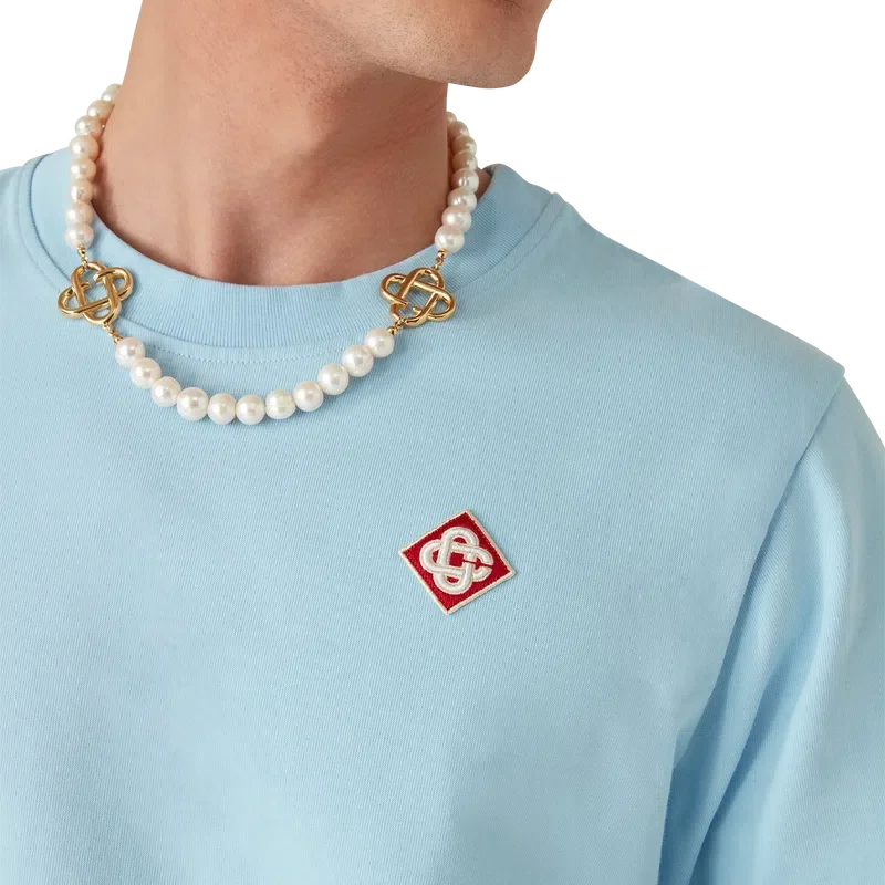 T-shirten med diamantlogotyp är en kortärmad modell i ekologisk bomull med märkets signaturdiamantlogotyp på vänster bröst. Avslutad med en klassisk rund halsringning och en etikett med Casablanca-logotypen.