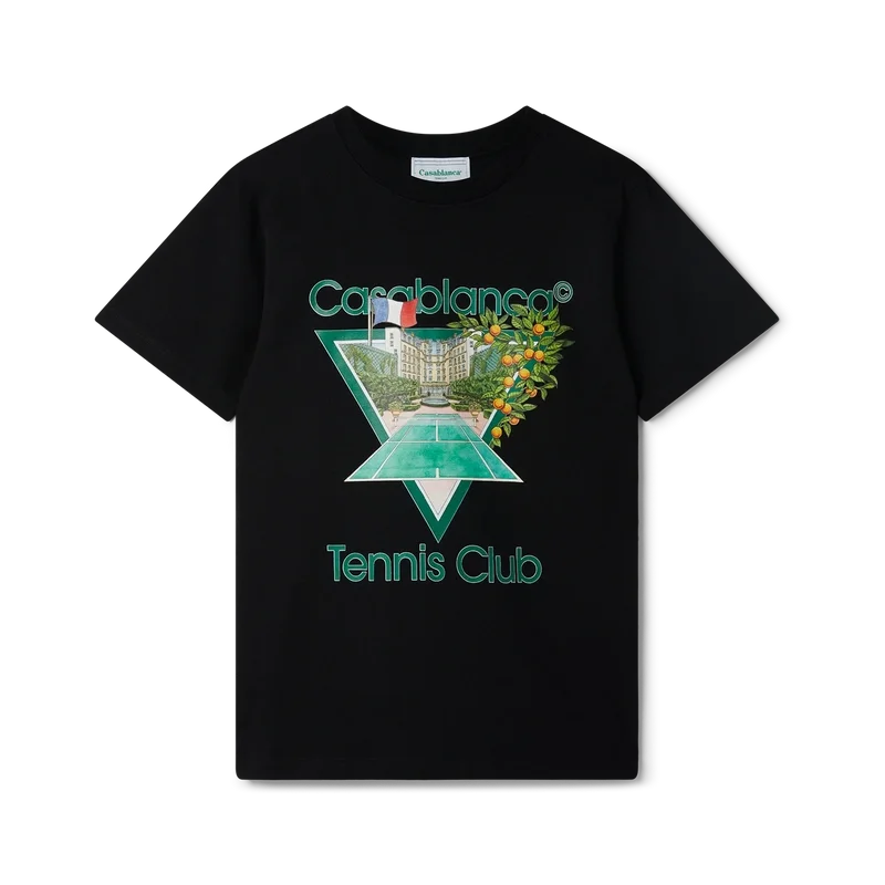 T-shirt i ekologisk bomull med Tennis Club Icon-tryck har en säsongsbetonad tolkning av vårt signaturmotiv Tennis Club Icon. Den har en klassisk rund hals, korta ärmar och Casablanca Paris-märkesetikett, och är designad för en avslappnad passform.