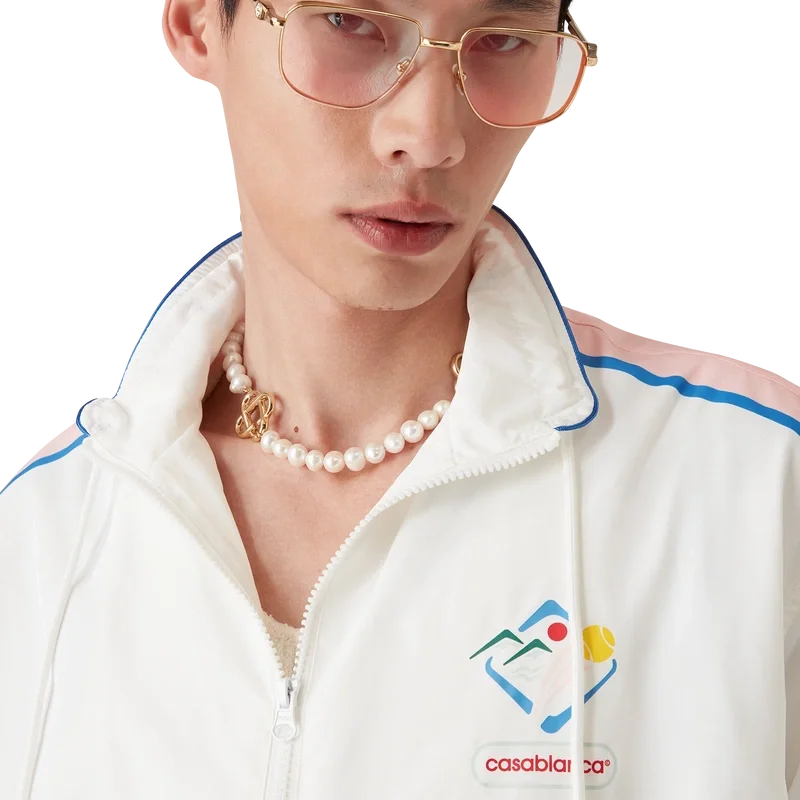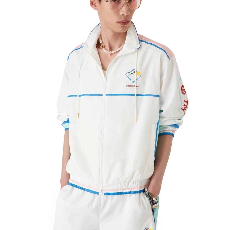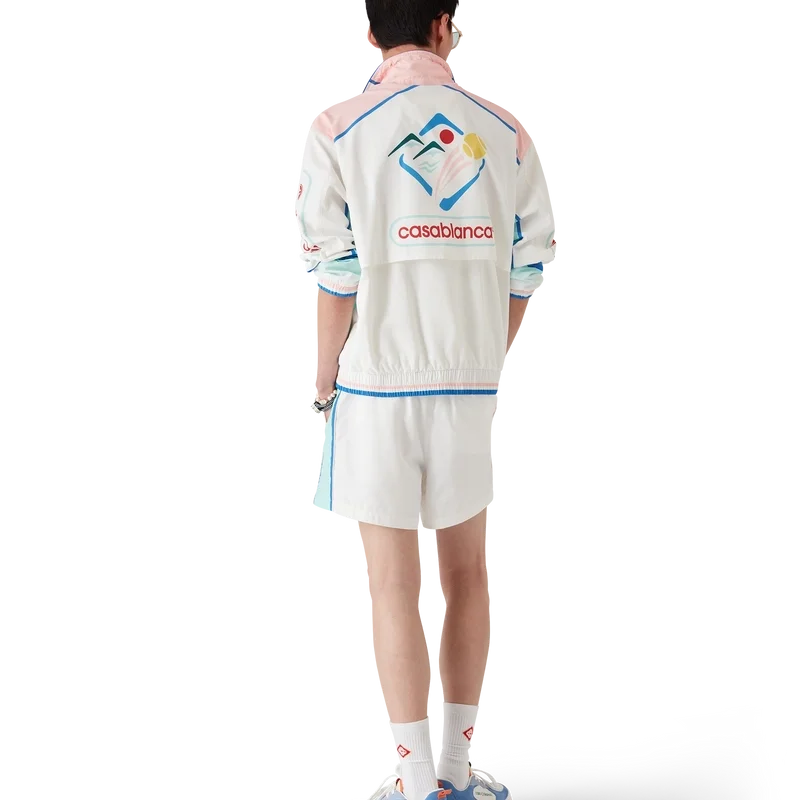 Casa Sportif vindjacka är en sportklädsel designad i ett tekniskt tafttyg, med säsongens konstverk inspirerade av Japan.