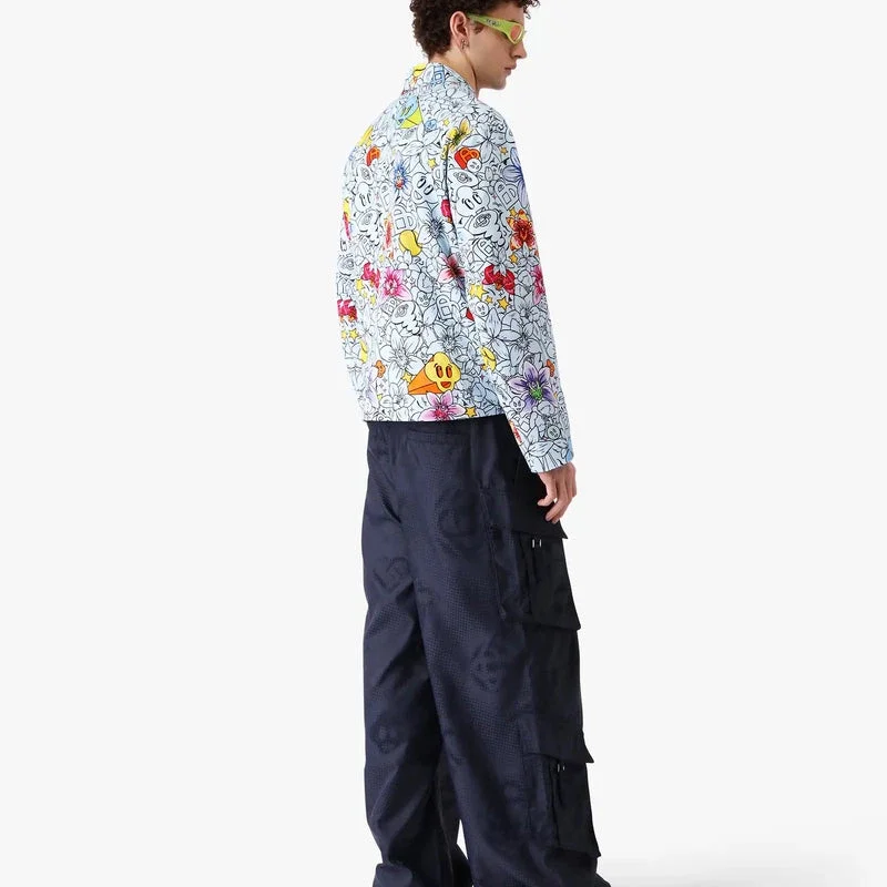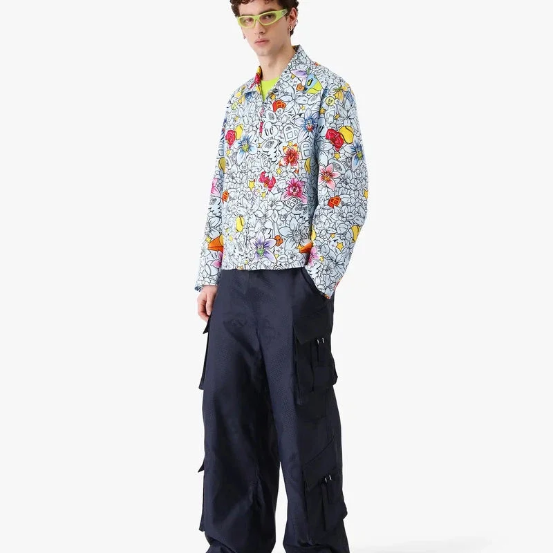 Collage D’icones Graphiques Repeat Zip-Up Jacket är en långärmad jacka med säsongens konstverk som representerar ikonografin och designelementen för den nya säsongen, inklusive tolkningar av logotypen, Cc Smile och orkidéblomman. Kompletterad med krage, dragkedja med husets signaturdiamantlogotyp på dragkedjetappen, dragsko i nederkanten och framfickor med halv dragkedja.