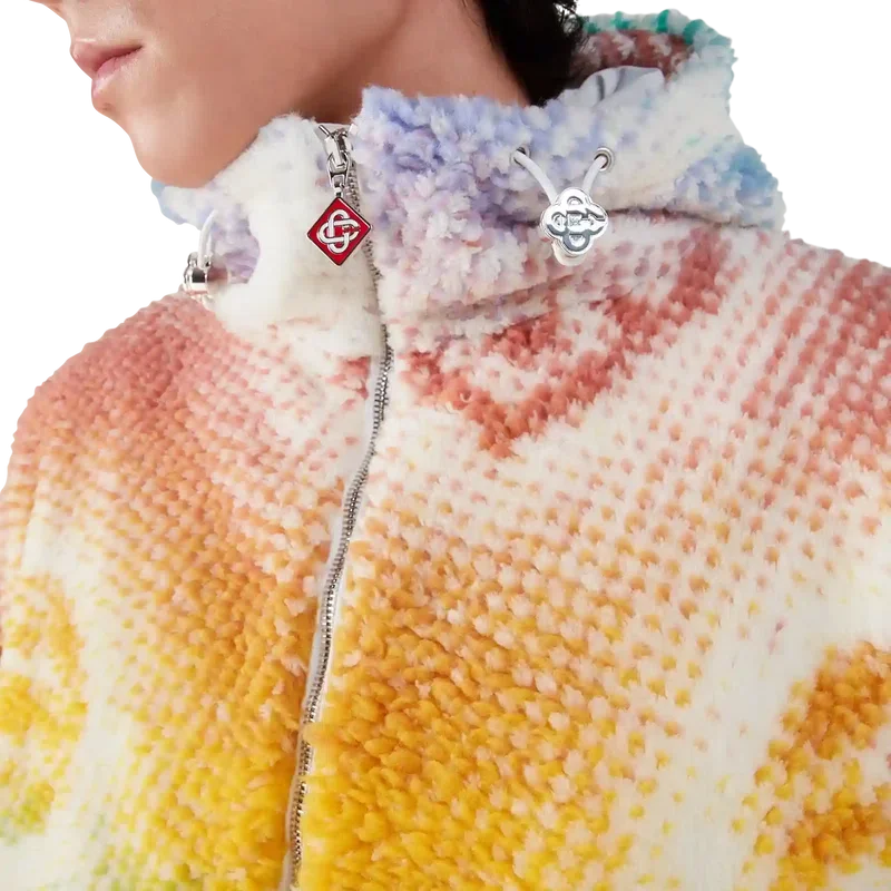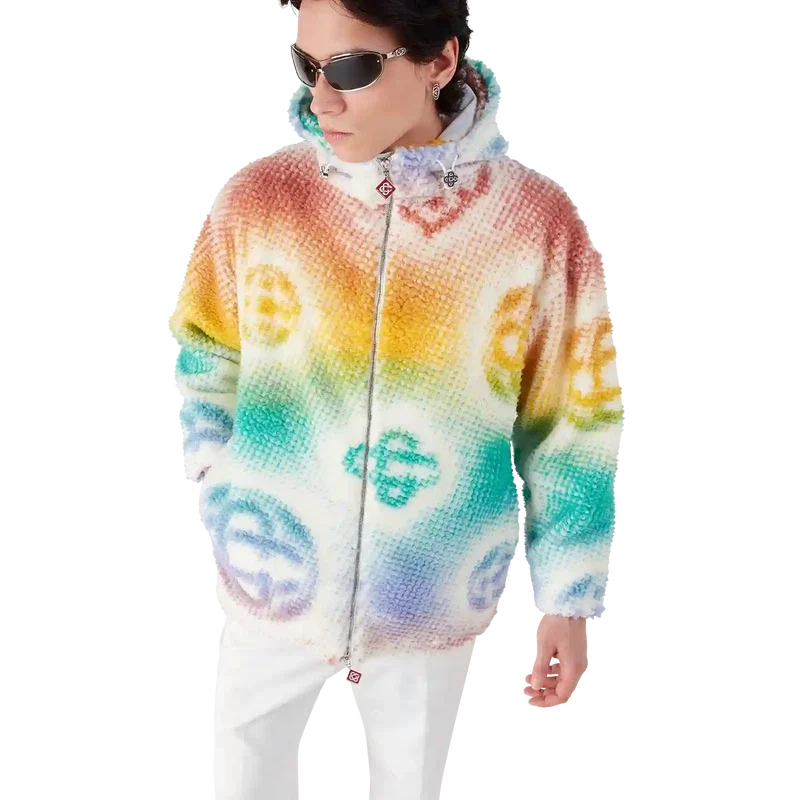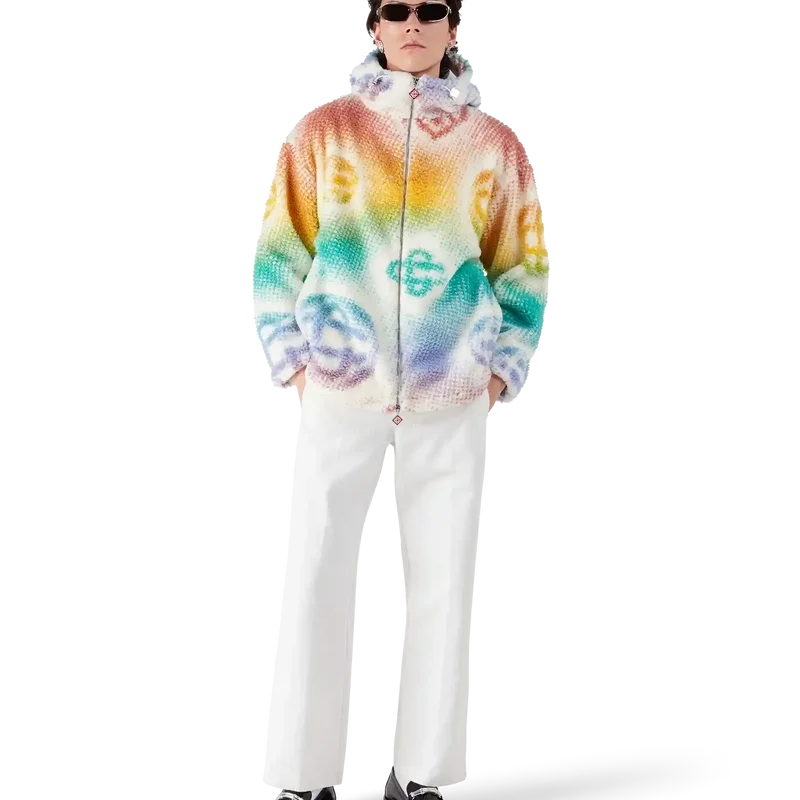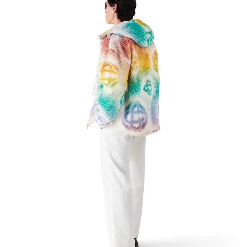Halftone Monogram Fleece Jacket är en långärmad jacka med heltryckt, modern design. Den pryds av husets monogram i halvtoner, framställt med airbrush, vilket bygger vidare på våra tidigare experiment med tekniken. Jackan har huva, dragsko med Cc-logotypknappar samt dragkedja med husets signaturdiamantlogotyp.