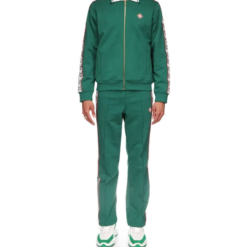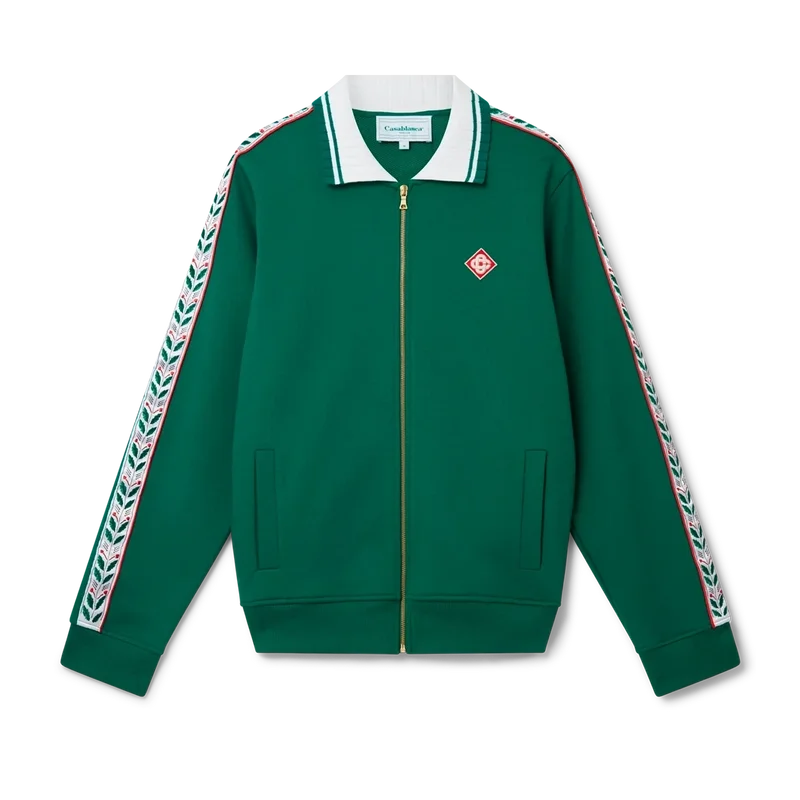 Laurel-jackan med dragkedja är en exklusiv sportklädesklassiker med husets signaturmönster Laurel på kontrasterande ribbning och Diamond Monogram-logotyp. Jackan är tillverkad av ett bomullsblandat tyg och har en klassisk passform, sidfickor med dragkedja, ribbade muddar och nederkant samt en kontrasterande krage.