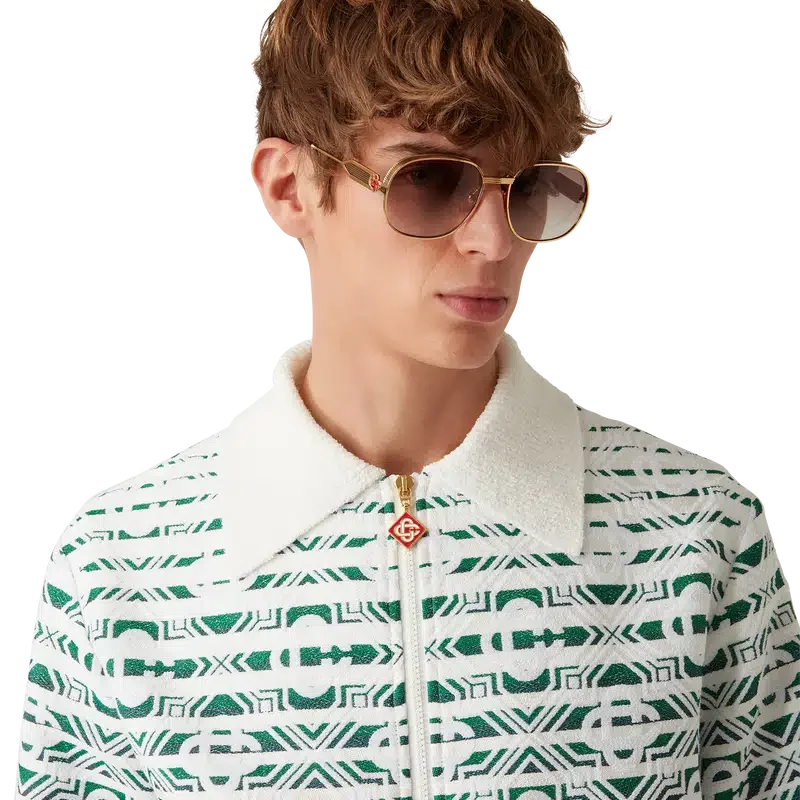 Monogram Gradient-frottéjackan har ett mjukt texturerat tryckt mönster och en klassisk silhuett. Den är tillverkad i ett frottétyg med gradient och pryds av husets signaturmönster, Diamond Monogram. Den kompletteras med dragkedja, guldpläterade detaljer och en uppvikt krage.