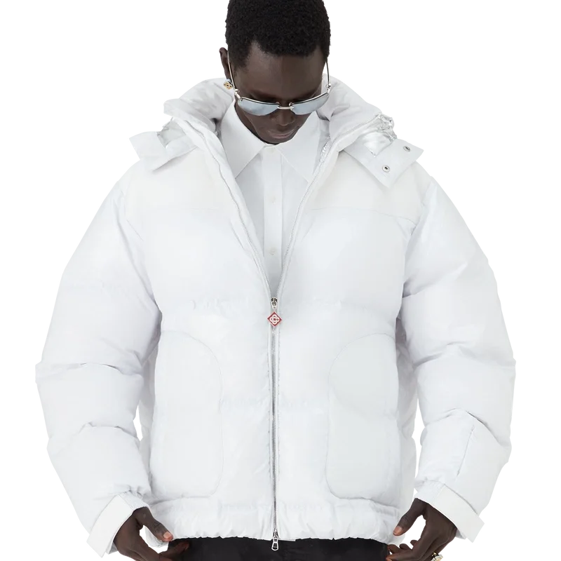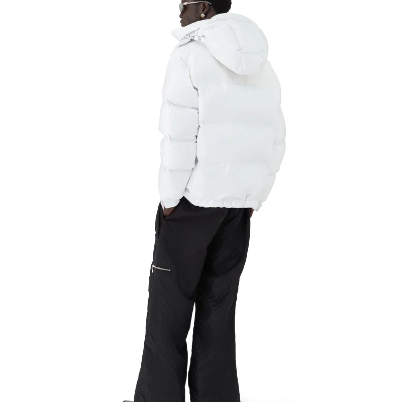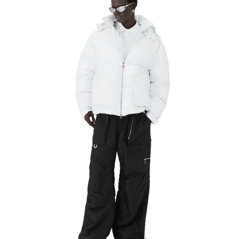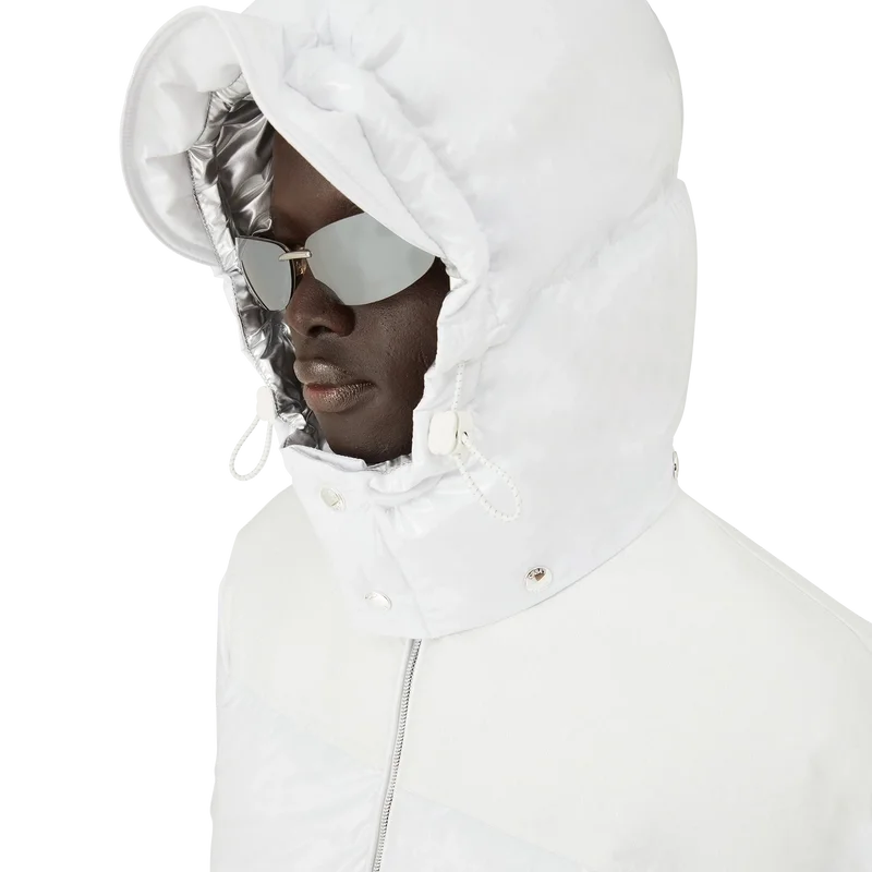 Skidpufferjackan är en raffinerad ytterplaggdesign tillverkad av ripstop-nylon med dunfyllning och kontrasterande monogramjacquardpanel över axlarna. Inspirerad av den orörda skönheten i Japans snöiga landsbygd, där höga bergstoppar och nysnö förvandlar jordbruksmark till oändliga vita horisonter. Kompletterad med en huva med Cc-logotypknappar och dragsko, en ståkrage som ger extra värme och skydd mot väder och vind, dragkedja med husets signaturdiamantlogotyp, framfickor med dragkedja, justerbara manschetter med märkeslogotyp samt elastisk nederkant och manschetter.
