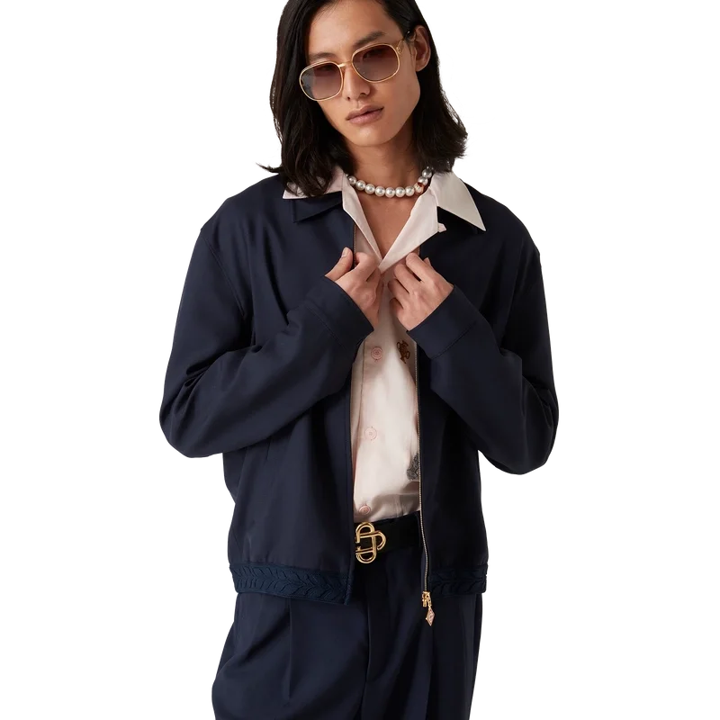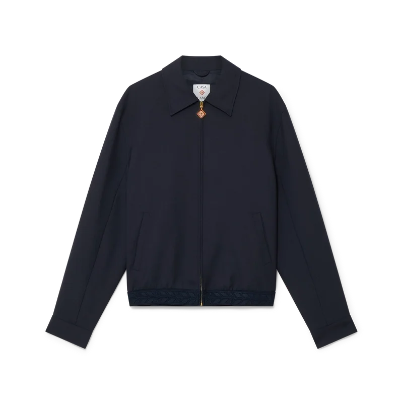 Denna sportiga skräddarsydda jacka i ull har en klassisk silhuett och är tillverkad av ny ull för en klassisk passform. Den har dragkedja fram med en signatur-dragkedjetapp med Diamond Monogram, spetsig krage, foder, vertikala fickor med kantband och elastiska muddar.